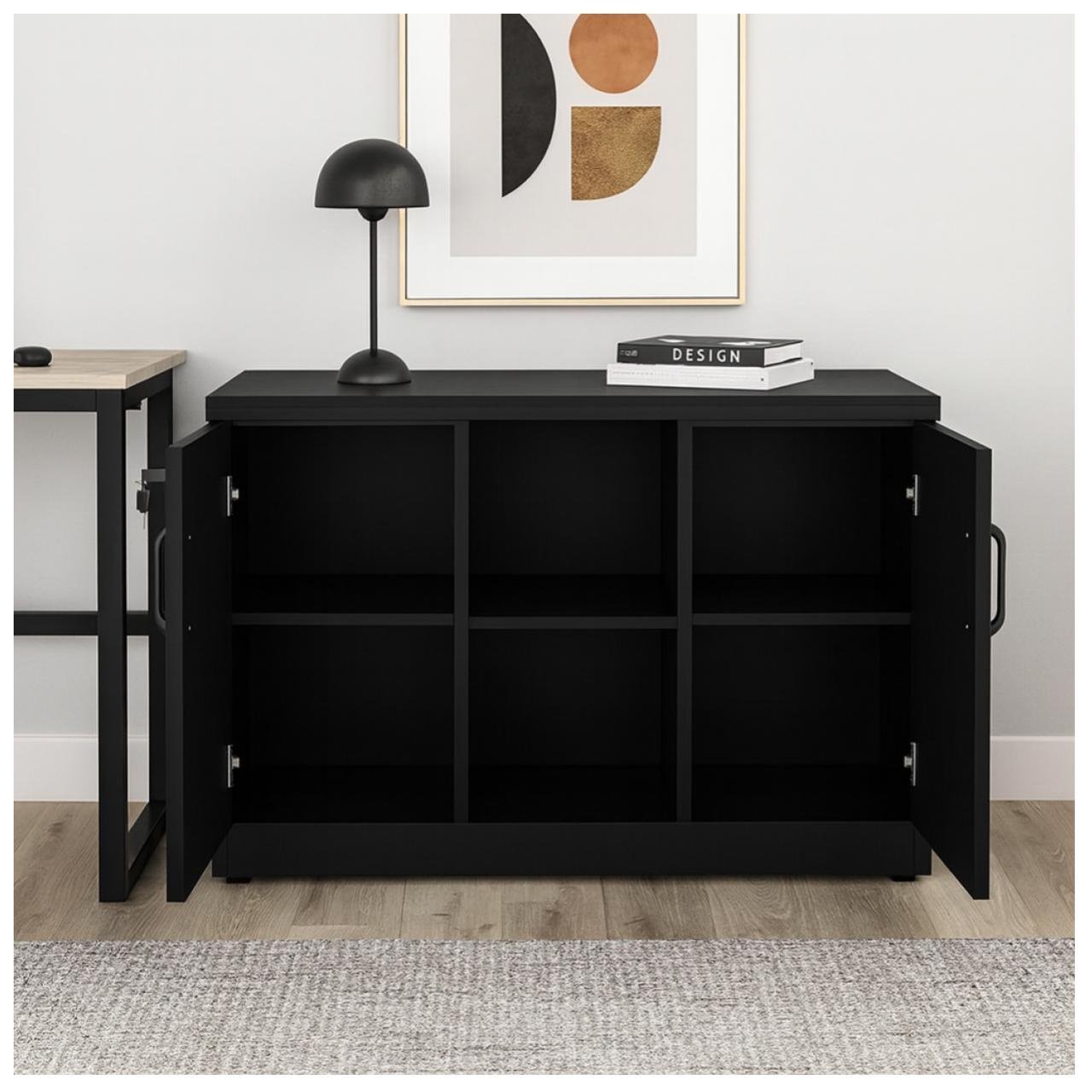 Porta direita com fechadura, garantindo armazenamento seguro de itens confidenciais.