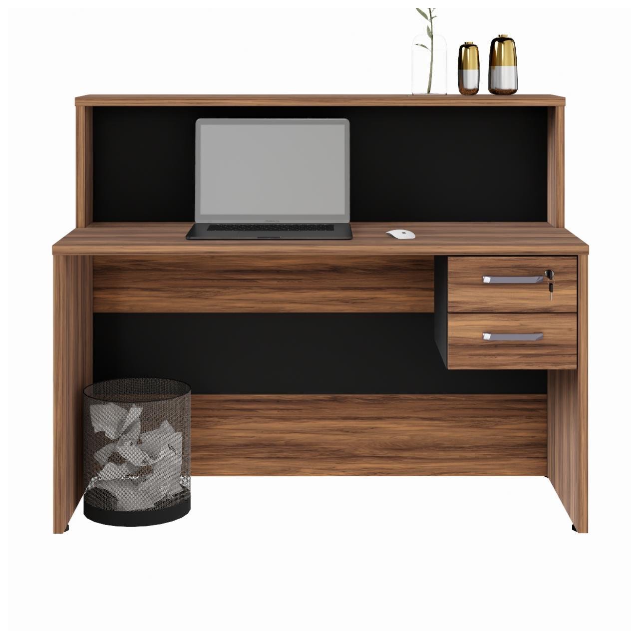 Balcão de Atendimento 1.35×1,13×0,60m – C/ 02 Gavetas NOGAL SEVILHA / PRETO – 63082