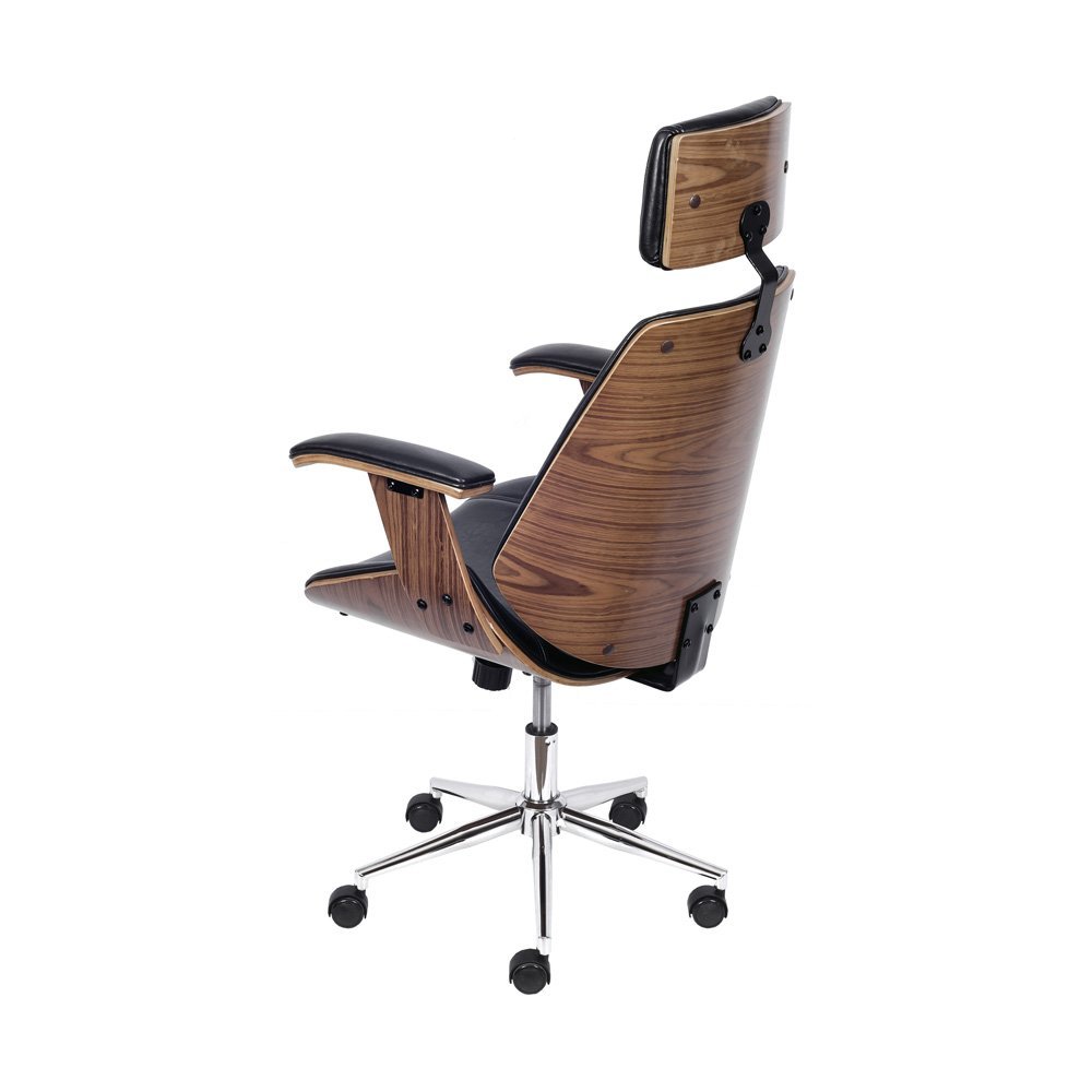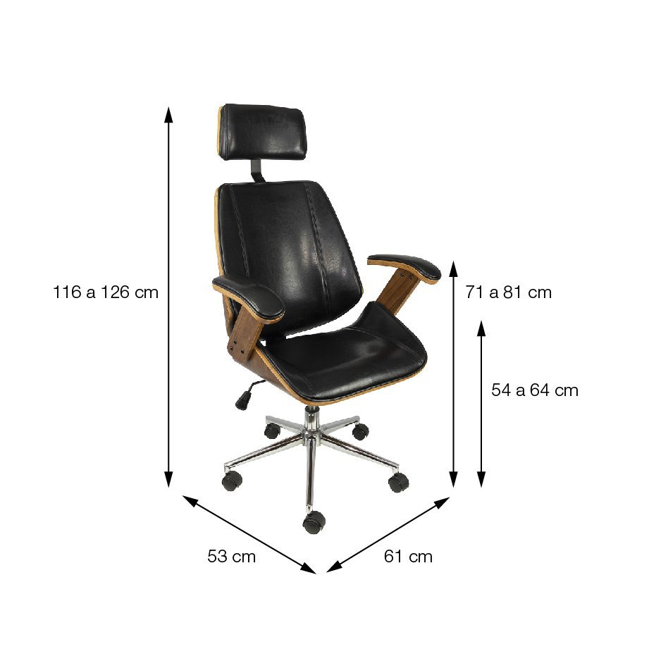 Cadeira Bergen Alta Base Rodízio Estrutura Em Madeira E Acolchada Revestida Em P.U. Preta