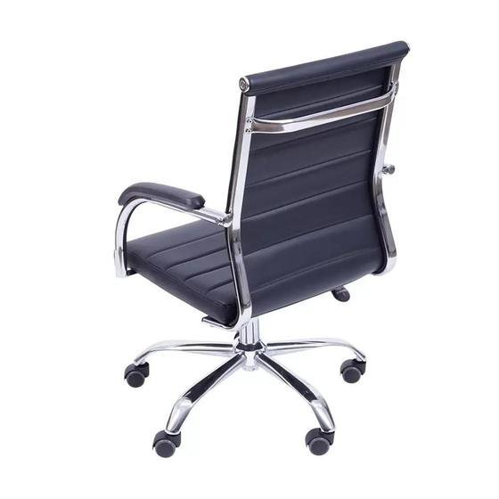 A Cadeira de Escritório Esteirinha Florença Giratória – Preto mistura estilo e conforto em um só produto. Capaz de combinar com qualquer estilo de decoração office, a poltrona também possui design que favorece a postura correta da região lombar evitando lesões ou fadigas. Características Principais •Material: Assento em espuma revestida em PU •Estrutura Cromada; •Sistema Relax com travamento; •Base: Giratória •Rodízio em PU; •Cor: Preta; •Peso do Produto: 13,73kg; •Peso Suportado: 120kg; •Com regulagem de Altura; •Altura Máxima: 117cm; •Altura mínima: 108cm; •Medidas: Altura: 117cm | Largura: 75cm | Comprimento: 75cm. Materiais •PU: Confere alta durabilidade, flexibilidade e compressibilidade do material; Pode ser compactado por um longo período de tempo a até 90% de seu tamanho normal e depois retornar à forma original sem sofrer nenhum dano prolongado.