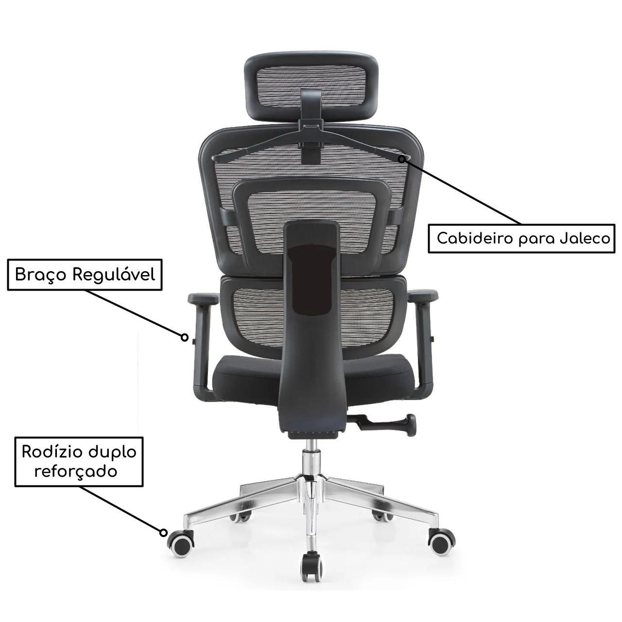 Cadeira de Escritório Presidente tela ARES Giratória - Cor Preto - PMD - 30063