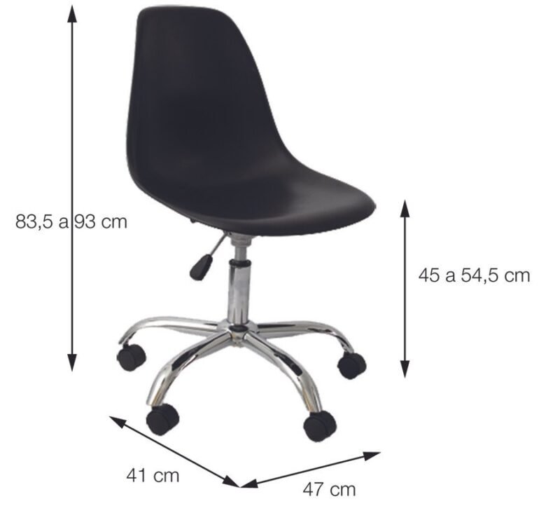 Material: Assento em polipropileno com base cromada e rodas em PU