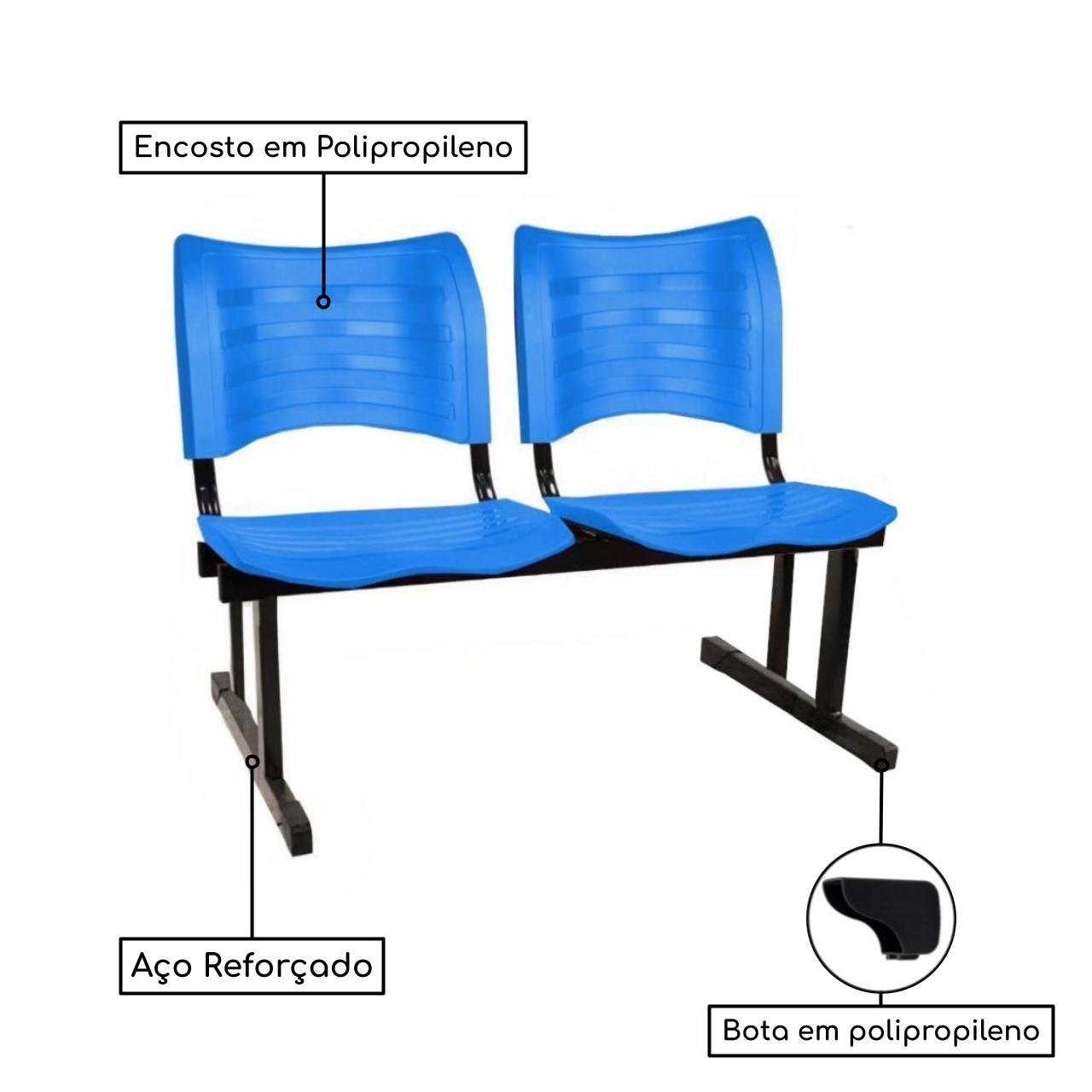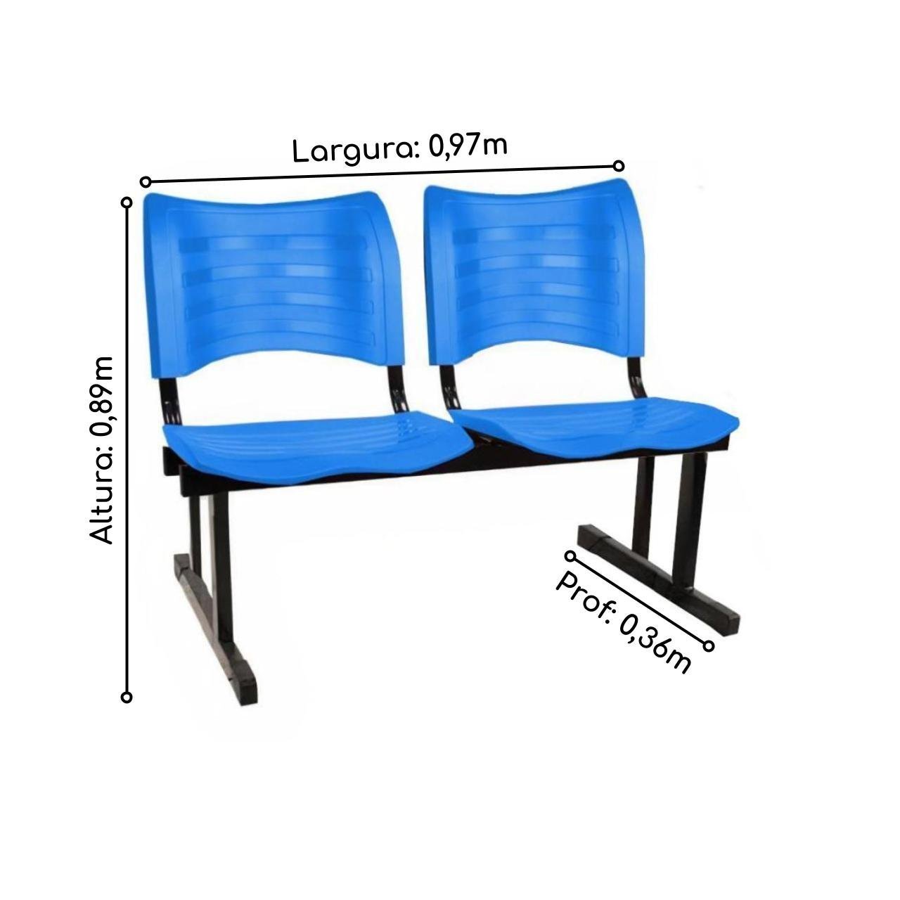 Produto: Cadeira Longarina Plástica 02 Lugares – Cor Azul – PMD – 34212