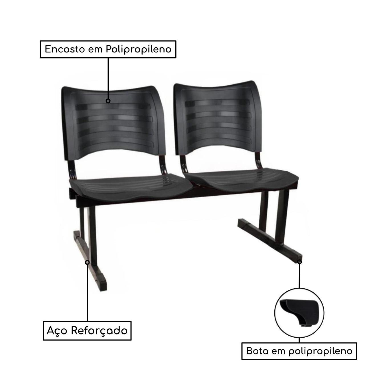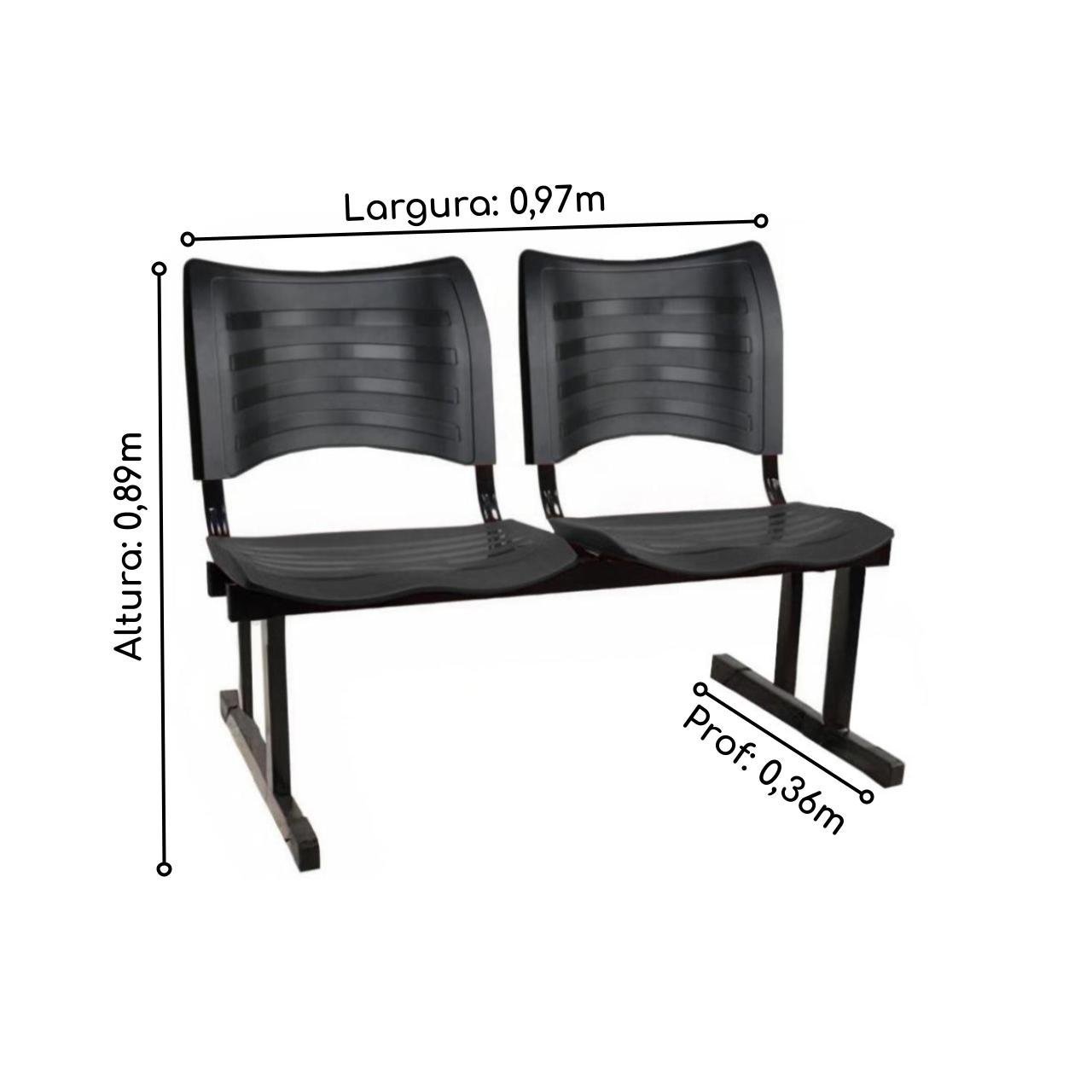 Cadeira Longarina PLÁSTICA 02 Lugares - Cor Preto - PMD - 34213