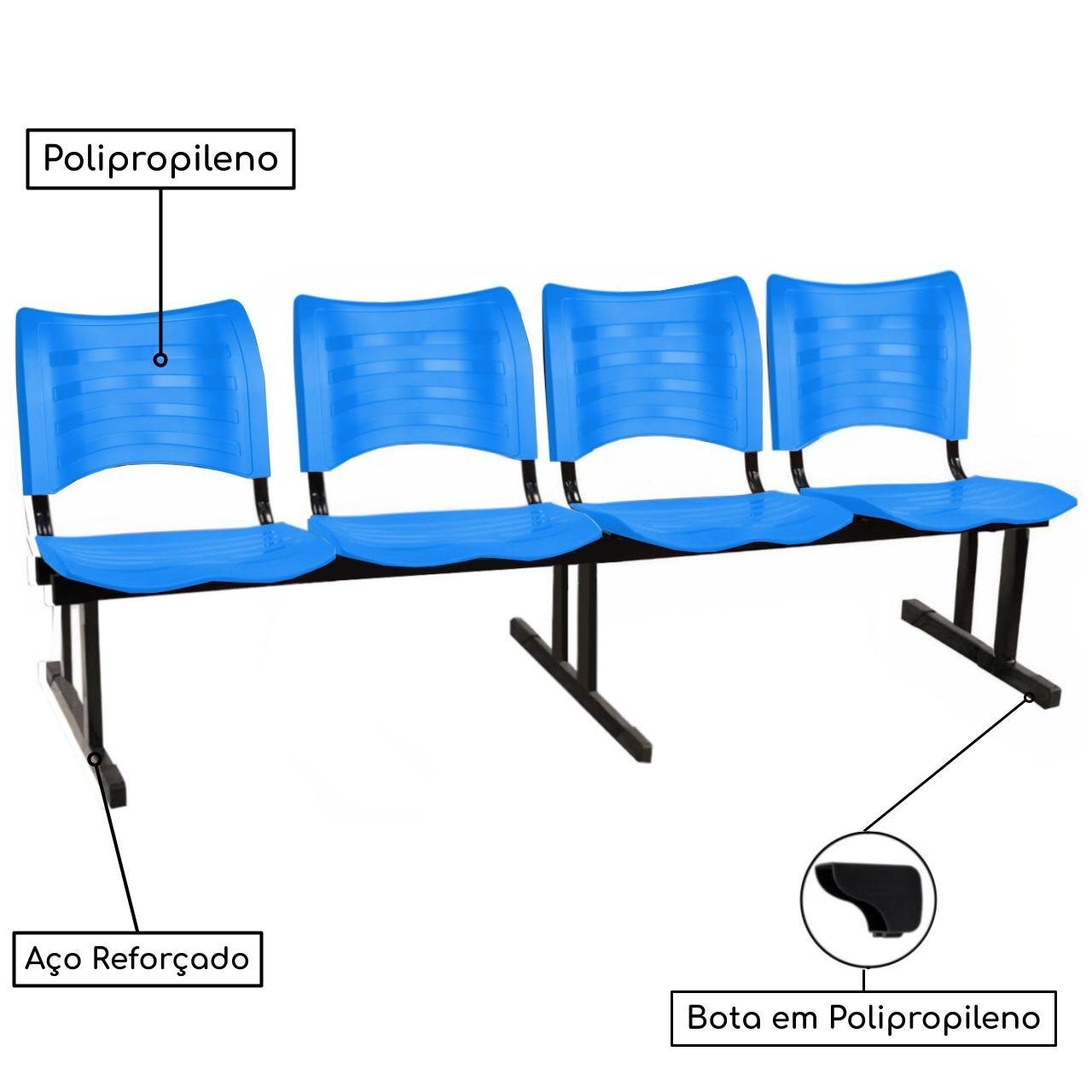 Cadeira Longarina PLÁSTICA 04 Lugares - Cor Azul - PMD - 34198