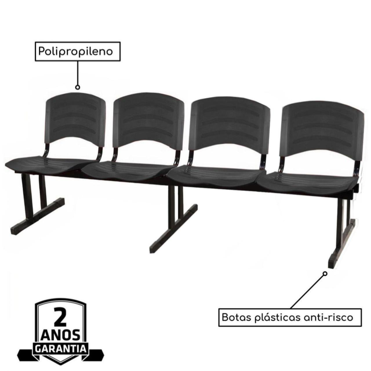 Produto: Cadeira Longarina PLASTICA 4 Lugares Cor Preto 33095