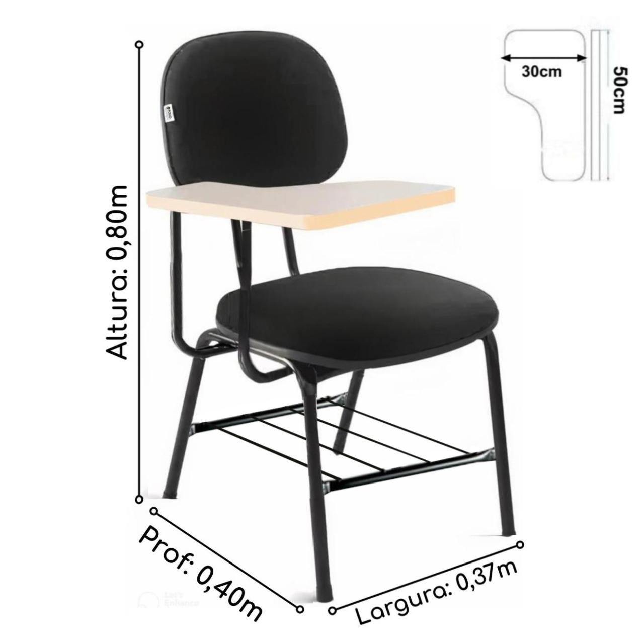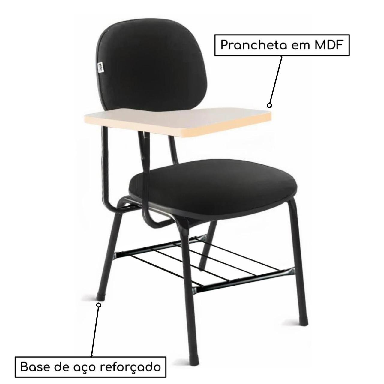 Mais informações: Carteira Universitária, Encosto e assento em corino cor preto, Prancheta em MDF.