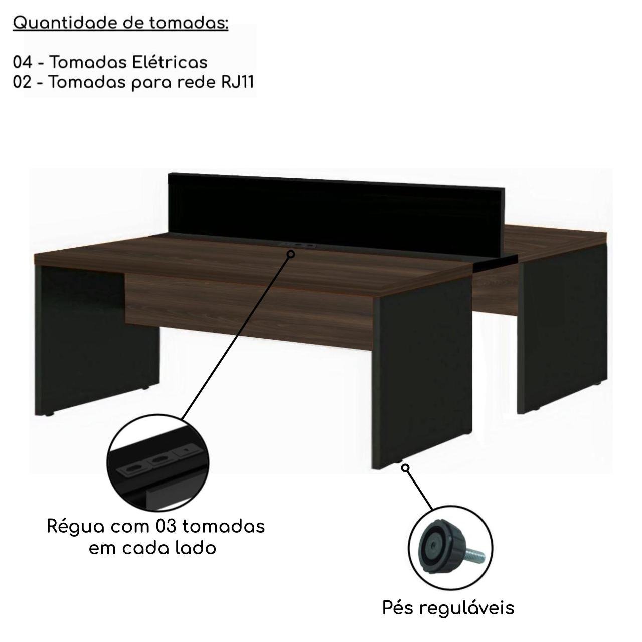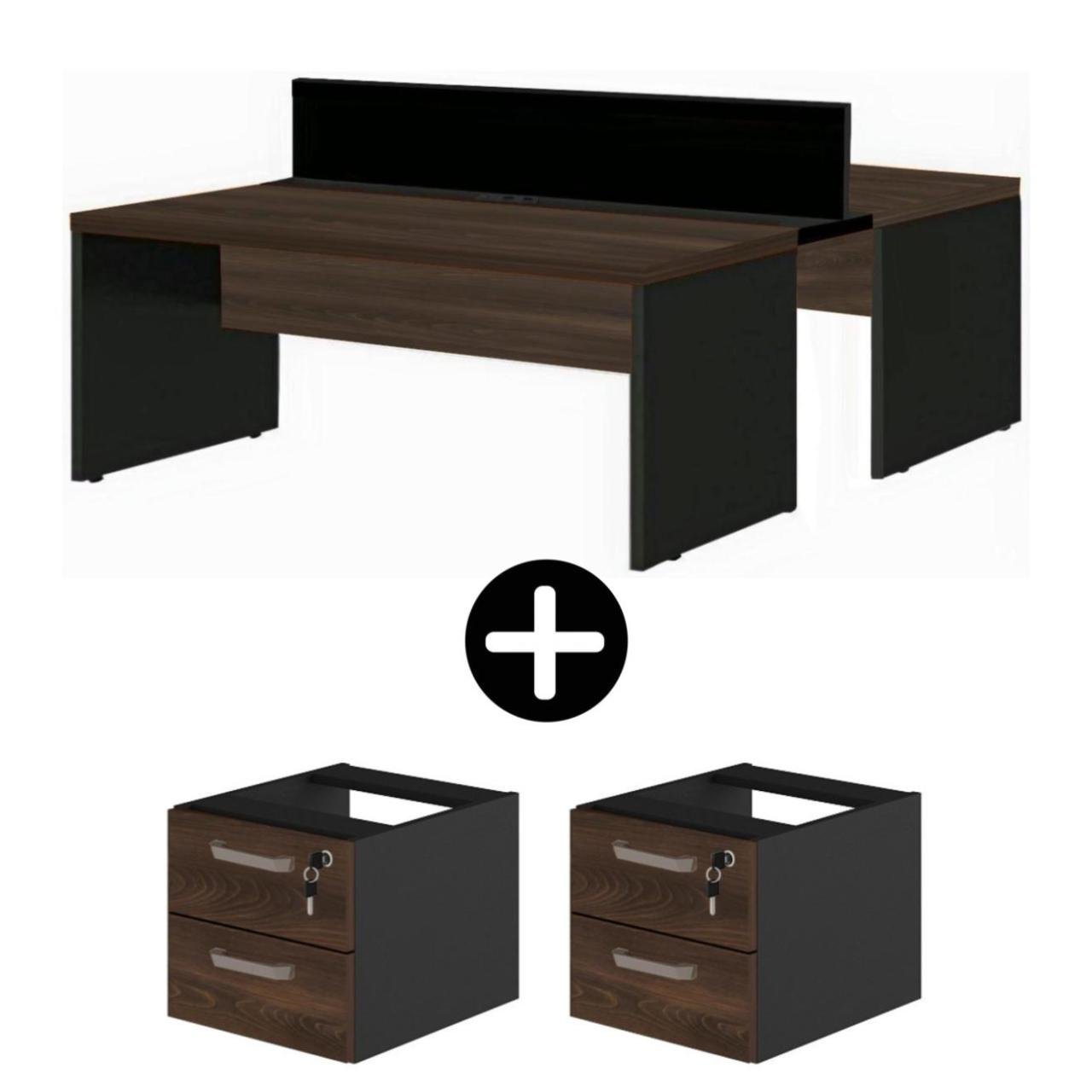 Estação de Trabalho Dupla 1,50×1,35m 02 Lugares c/ Gavetas c/ ponto de tomada MARSALA/PRETO – 63092