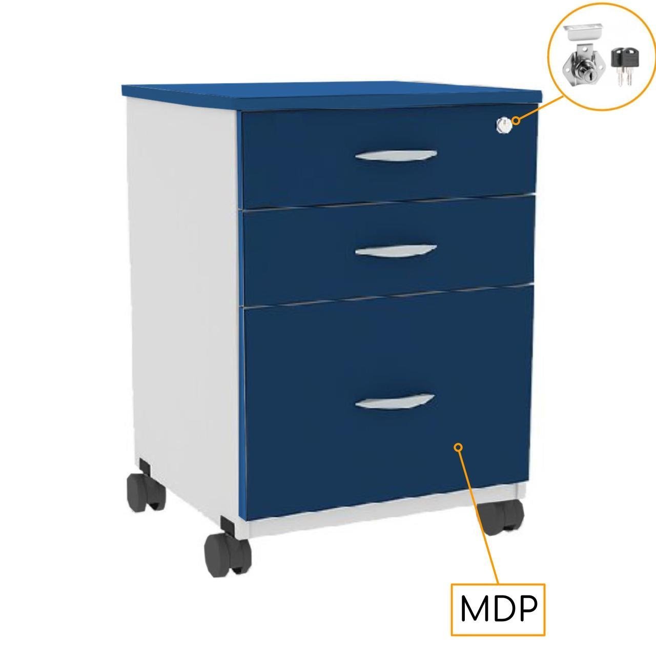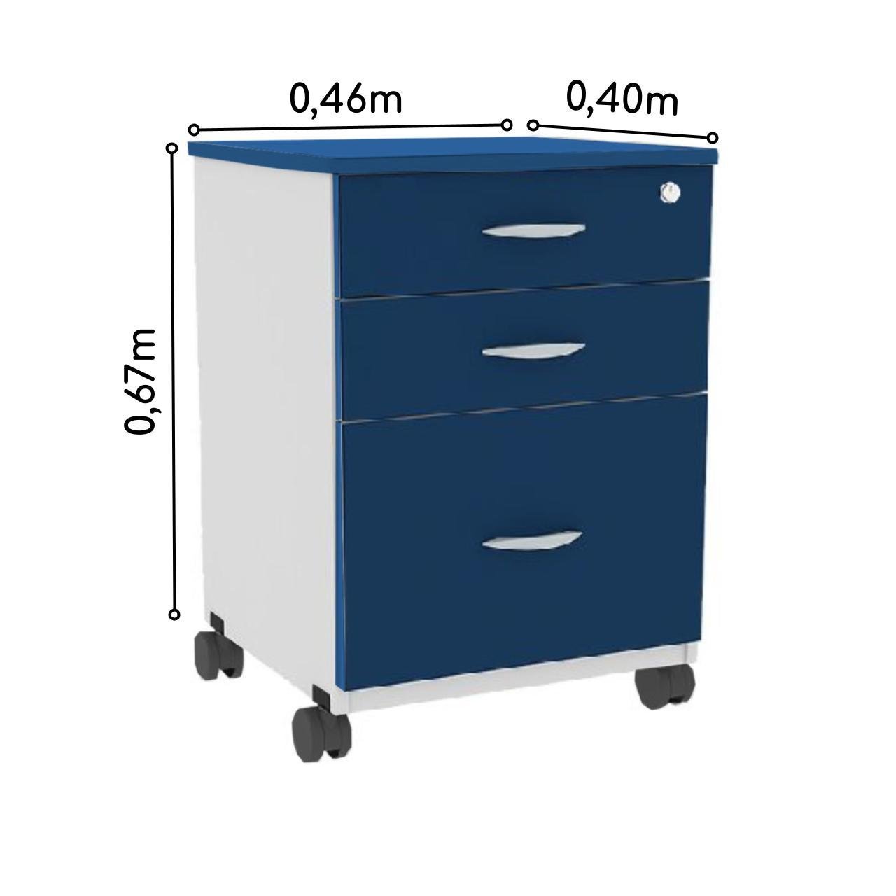 Gaveteiro Volante 03 Gav. 0,67×0,46×0,40m – AZUL/CZ – PMD – 44104