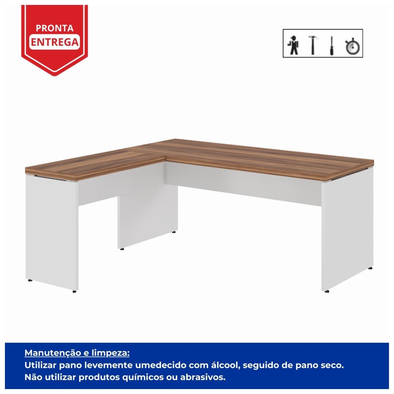 Mesa em L (Mesa 1,50m + Mesa Auxiliar) - S/ Gavetas - WORKSTART - NOGAL SEVILHA/BRANCO - 34323