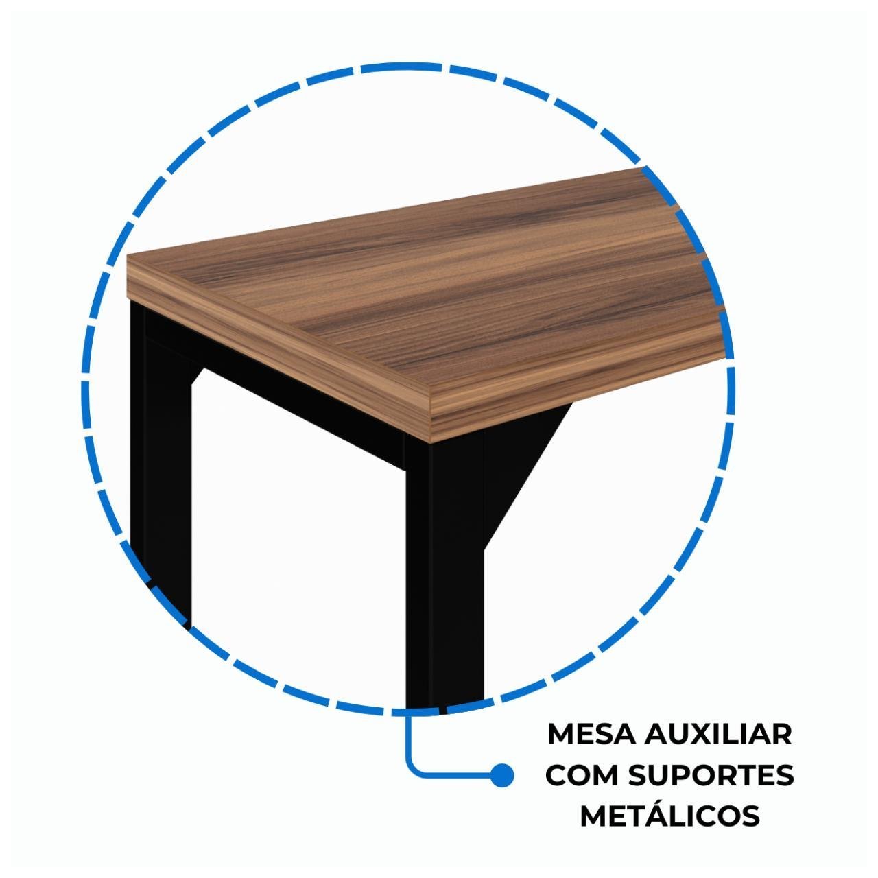 Mesa em L PÉ QUADRO (Mesa 1,70m + Mesa Auxiliar) - S/ Gavetas NOGAL SEVILHA/PRETO - 24478