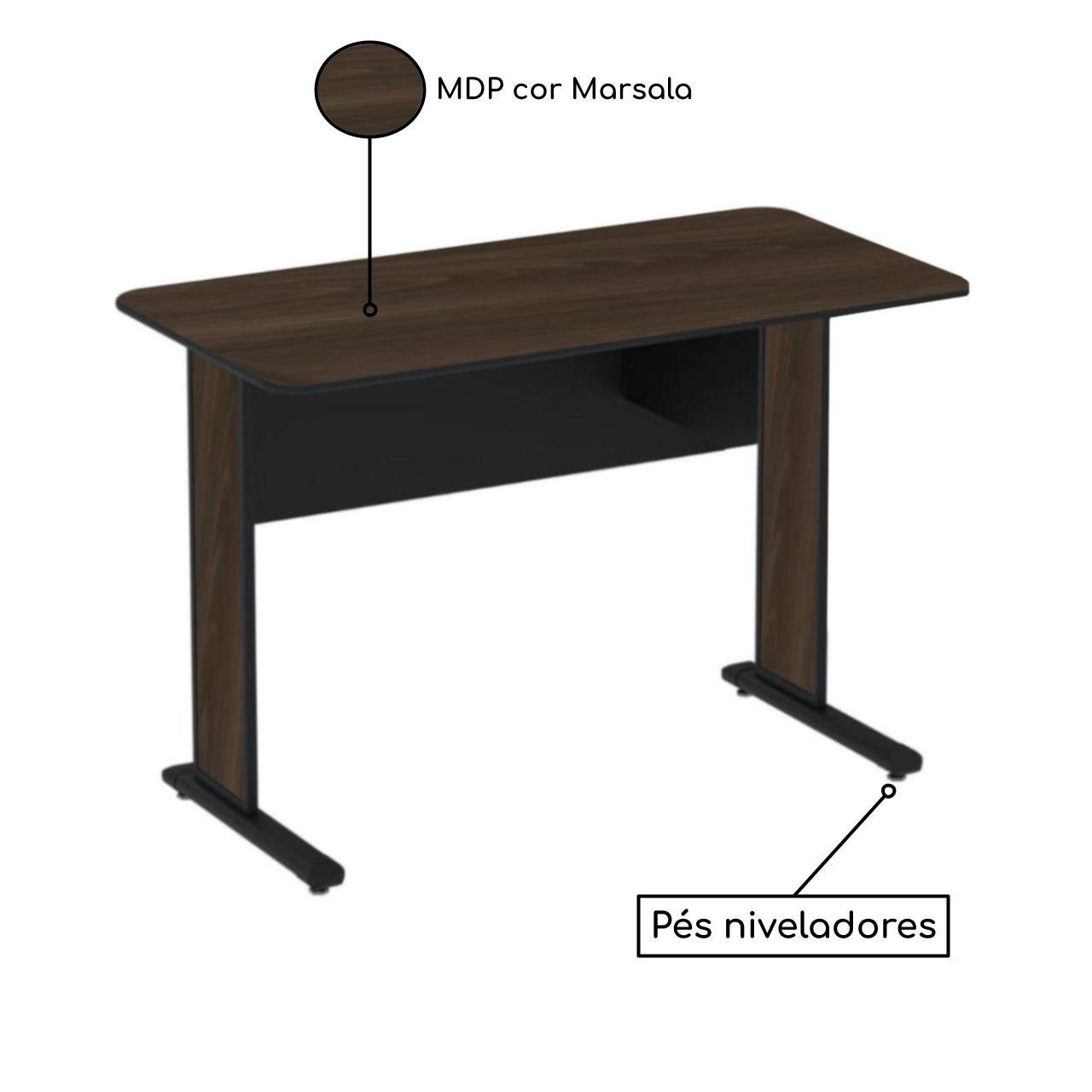 Mesa Escritório 1,50x0,60m 15MM - S/GAVETAS - JOB - MARSALA / PRETO - 23602