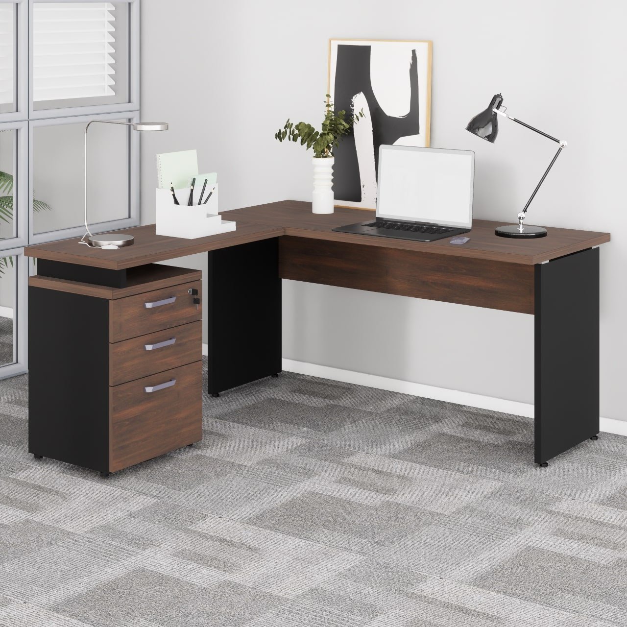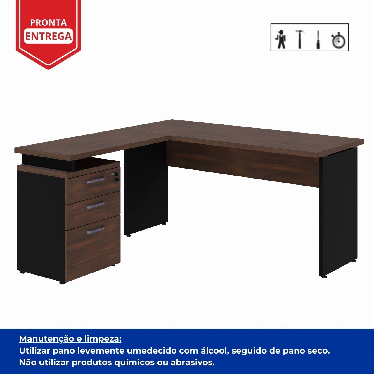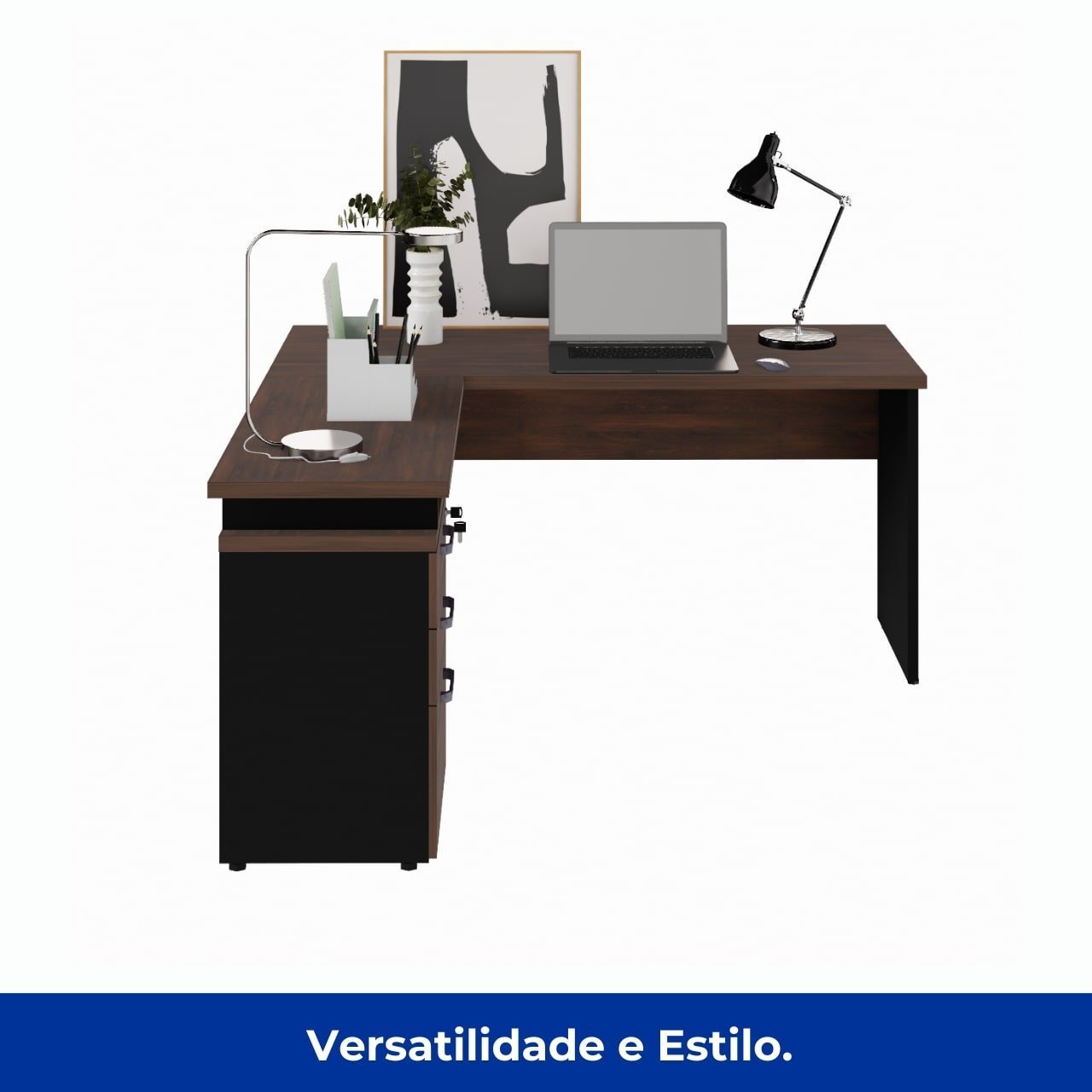 Mesa Escritório em “L” c/ Gaveteiro 1,50m MARSALA/PRETO – 23480