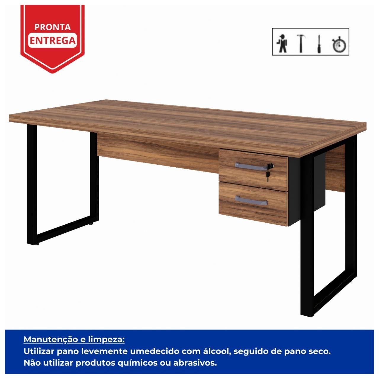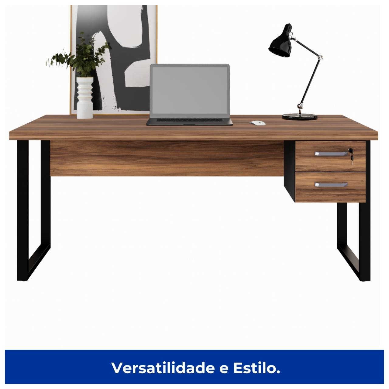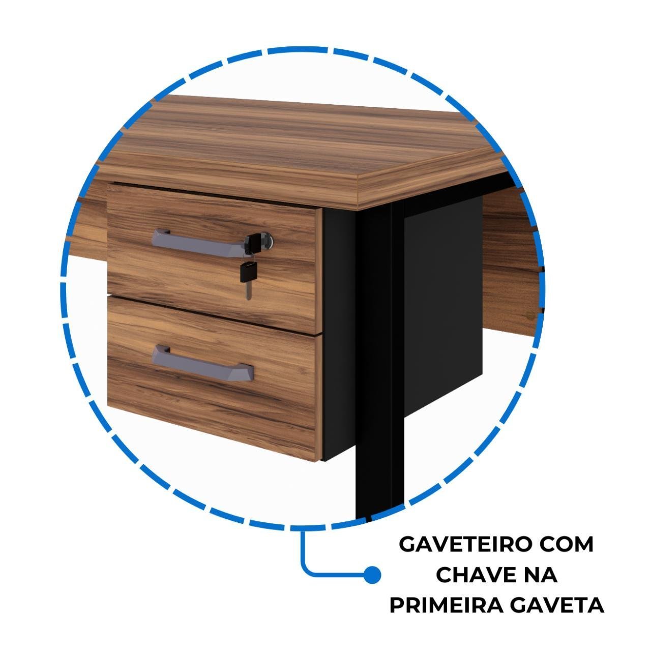 Mesa Escritório PÉ QUADRO 1,70×0,70m – C/ Gavetas – NOGAL SEVILHA/PRETO – 24475