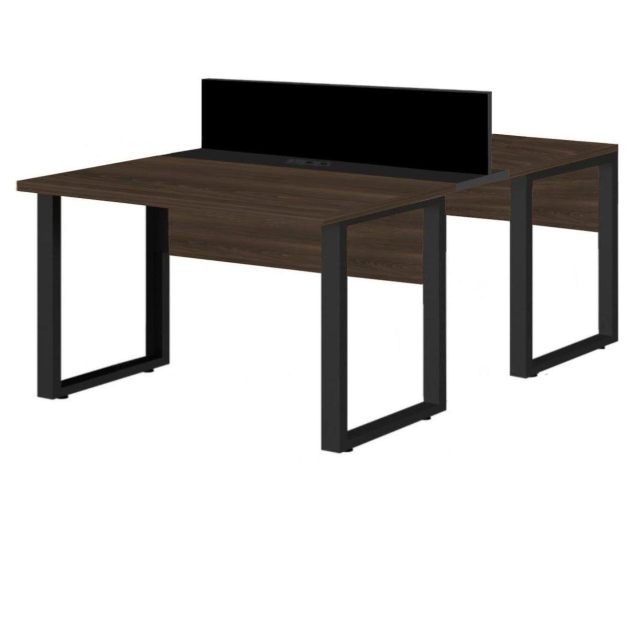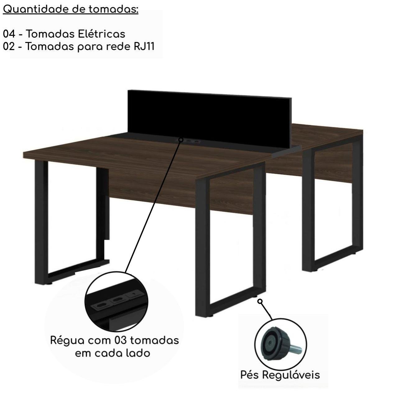 Mesa Estação de Trabalho Dupla 1,50x1,35m 2 Lugares s/ Gavetas c/ ponto de tomada PÉ QUADRO MARSALA/PRETO - 64002