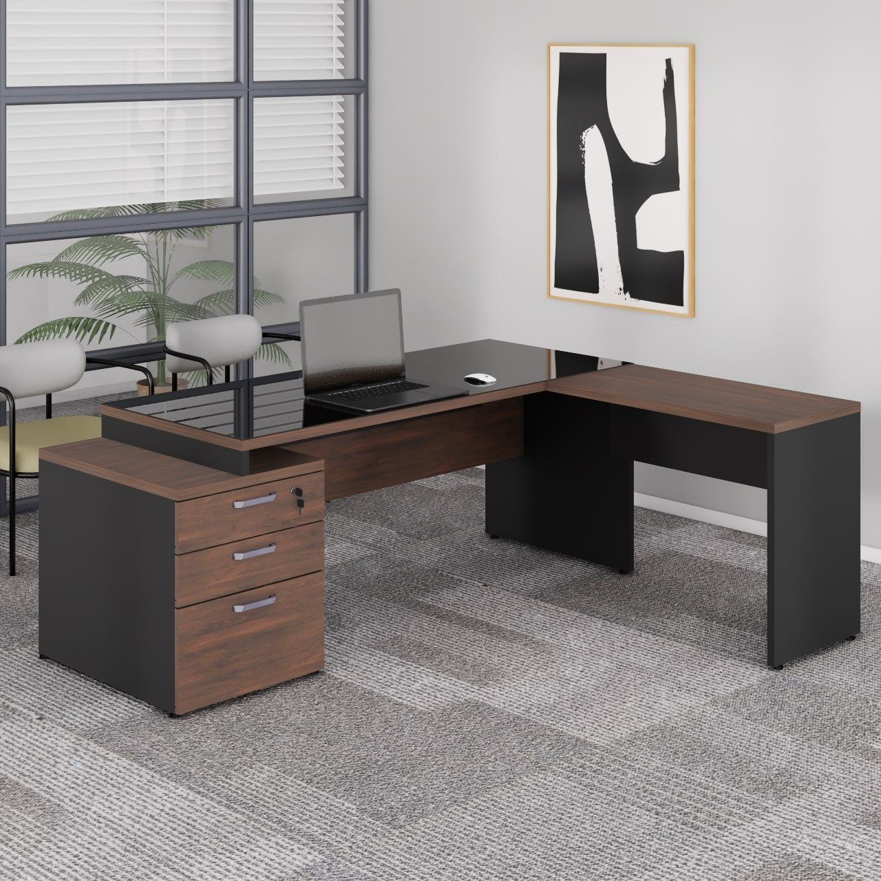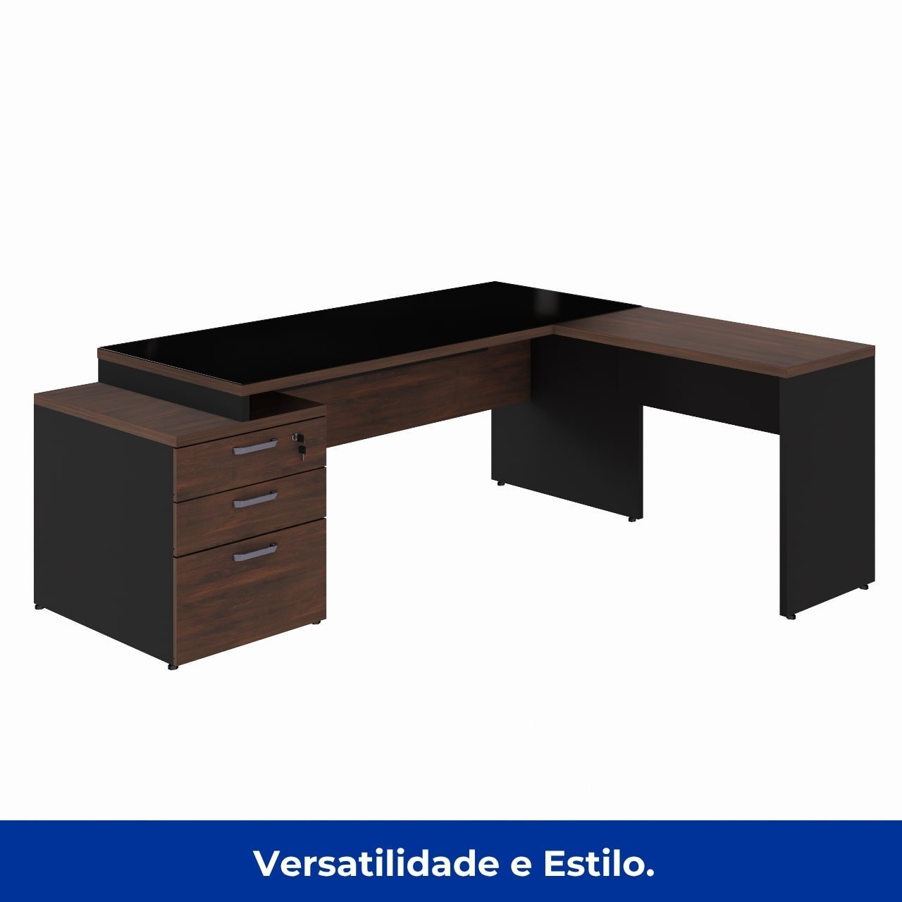 Conteúdo da Embalagem: MESA DIRETOR DINÂMICA COM GAVETEIRO PEDESTAL (02 Gavetas e 01 Pasta) – tampo 1700X700mm / MESA AUXILIAR DINÂMICA / VIDRO TEMPERADO PARA MESA DIRETOR