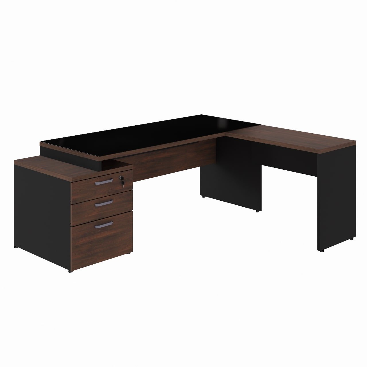 Composição: MESA DIRETOR DINÂMICA COM GAVETEIRO PEDESTAL (02 Gavetas e 01 Pasta) – tampo 1700X700mm / MESA AUXILIAR DINÂMICA / VIDRO TEMPERADO PARA MESA DIRETOR
