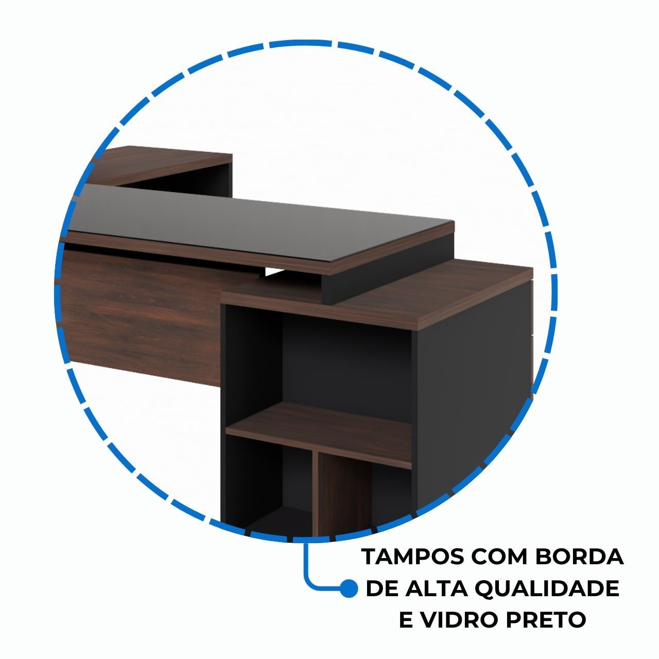 Material do Tampo: MDP de 40mm com Revestimento Melamínico de Baixa Pressão (BP)