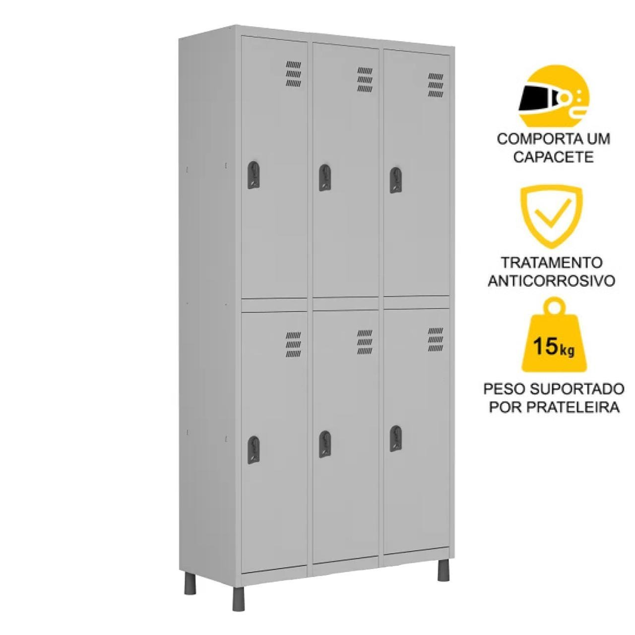 Roupeiro de Aço c/ 06 PORTAS GRANDES – 1,84×0,96×0,35m – CZ/CZ – W3 – 10913