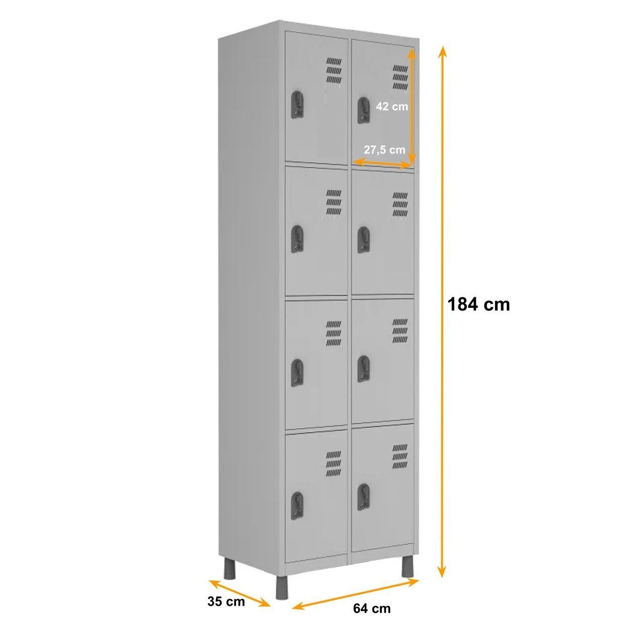 Roupeiro de Aço c/ 08 Portas PEQUENAS – 1,84×0,64×0,35m – CZ/CZ – W3 – 10017